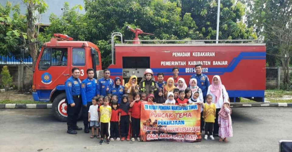 Hal ini membuat Dinas Pemadam Kebakaran dan Penyelamatan (DPKP) Kabupaten Banjar melaksanakan edukasi pelatihan Keselamatan dan Kesehatan Kerja (K3), Pencegahan dan Penanggulangan Kebakaran kepada anak anak TK Negeri Pembina Martapura Timur, di Halaman Kantornya, Selasa (14/6/2022).