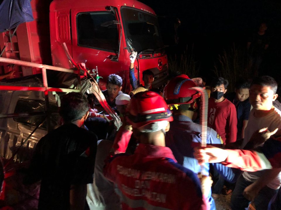 Kecelakaan kendaraan roda 4 dan 6 di KM 48 Desa Astambul, Kecamatan Astambul, Rabu (15/6/2022) sore mengakibatkan satu korban yaitu sopir mengalami luka parah karena tergencet dampak bagian depan kendaraan rusak parah.