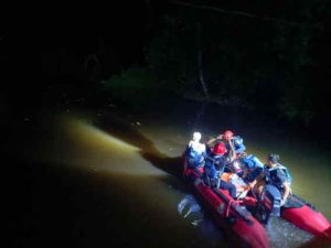 Pada malam hari, sekitar pukul 22.00, kondisi air di area pencarian meningkat hingga setinggi lutut orang dewasa di jalan utama desa. Meski demikian, penyisiran tetap dilanjutkan oleh tim hingga mendekati pukul 23.00 WITA.