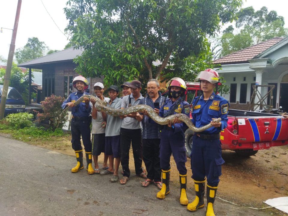 “Mengingat ular tersebut dapat membahayakan bagi warga dan menghindarkan terjadinya konflik antara manusia dengan hewan liar, terlebih ular sanca kembang ini termasuk hewan buas yang dilindungi,”katanya.